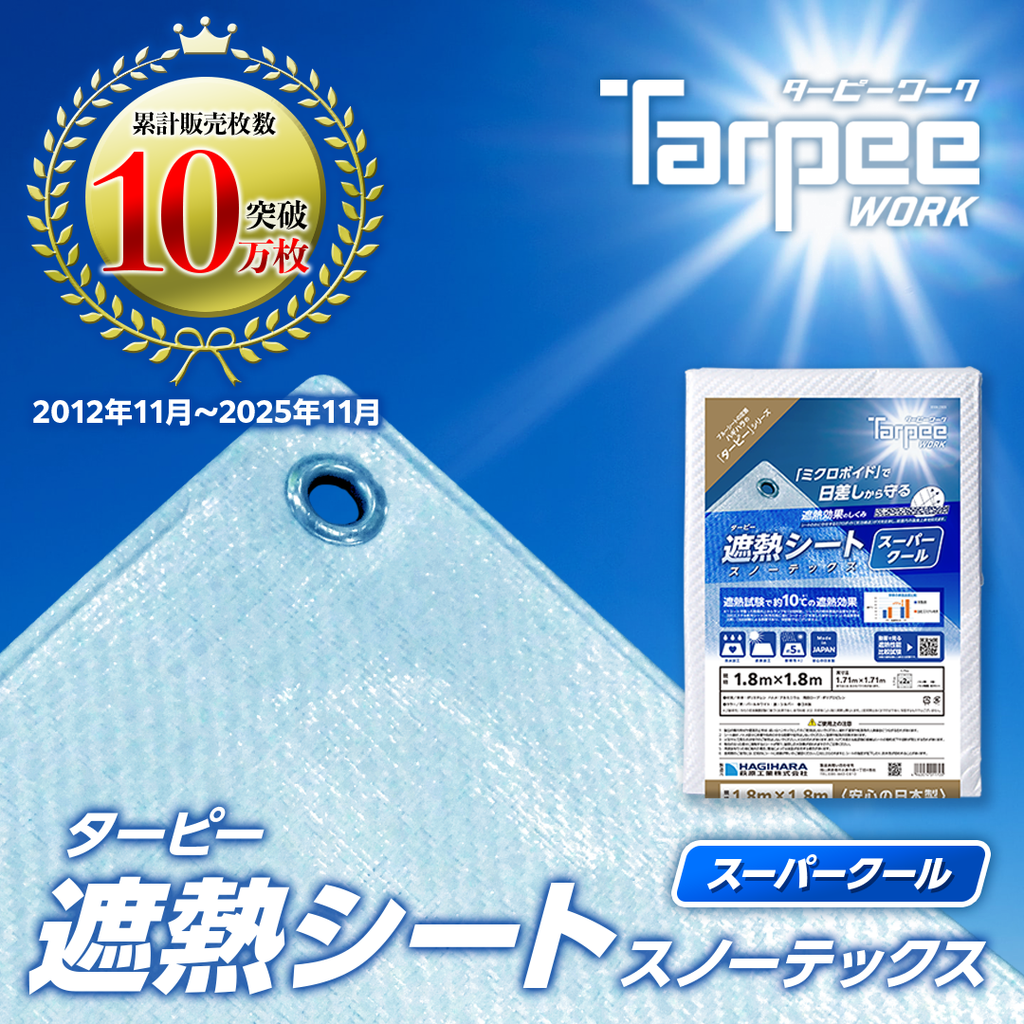 一般的なブルーシートに比べて温度上昇を抑制する効果を持ちます。
