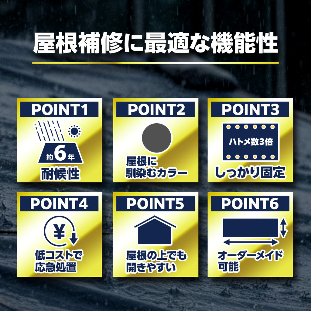 突然の雨漏り、台風による屋根の破損… もう慌てない!大切な家屋を守る、プロ仕様の屋根雨漏り防止シートです。